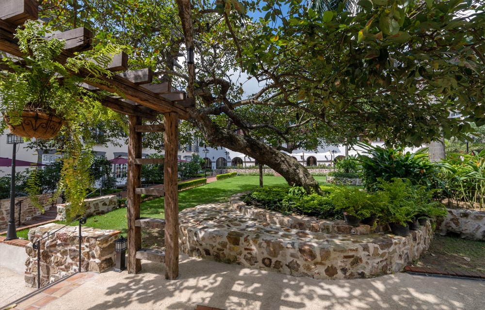 In addition to these period structures surrounding the courtyard a 300-year-old church completes the enclosure of the spacious courtyard now meticulously restored with lush gardens, alfresco dining, and settings for events of all kinds.