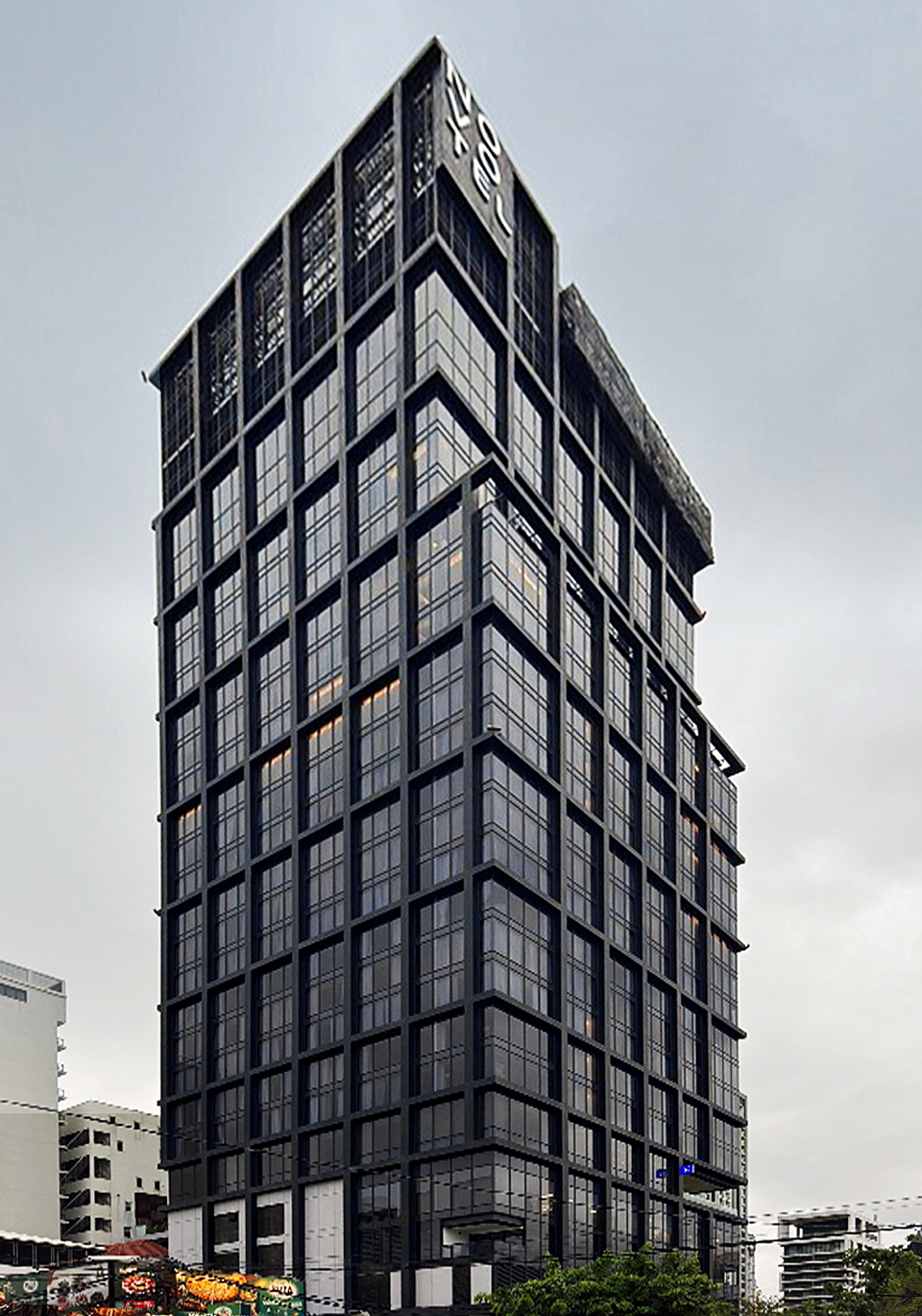 unique and iconic massing. The building façade is vertically accentuated to visually increase the building height. The double height lobby and F+B venues establish a street level scale and presence and scale.